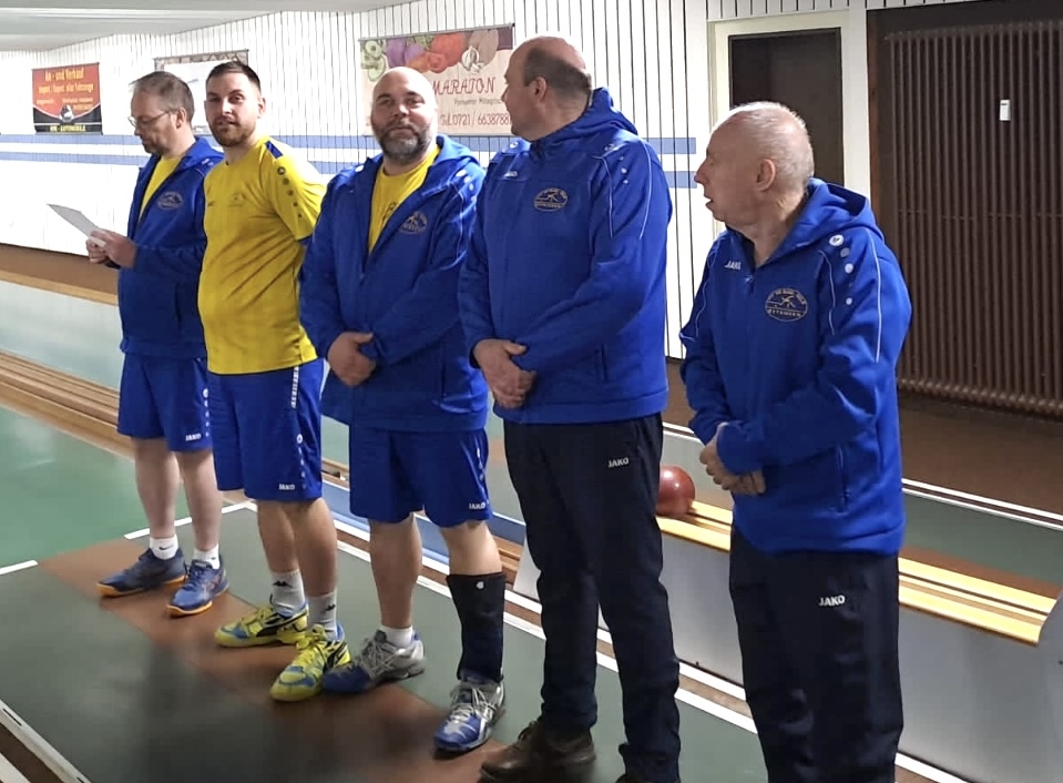 Pascal 517 und Christian 523 eröffneten das Spiel. Das Mittelpaar stellte dieses Mal Thorsten 530 und Willi 467. Andreas 566 und Michael 503 Kegel spielten im Schlußpaar, konnten aber die Niederlage nicht mehr abwenden. Mit 3290 Kegel spielen die Karlsruher aber auch ein sehr gutes Mannschaftsergebniss. Und stehen zurzeit auf dem zweiten Tabellenplatz.